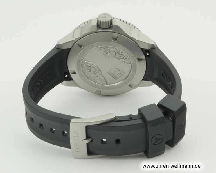 Das Gehäuse der Circula DiveSport besteht aus Titan, einem Material, das für seine hohe Festigkeit bei geringem Gewicht bekannt ist. Titan ist korrosionsbeständig und besonders hautfreundlich, was diese Taucheruhr ideal für den täglichen Einsatz macht. Die matte Oberfläche unterstreicht den funktionalen Charakter und reduziert störende Lichtreflexionen.