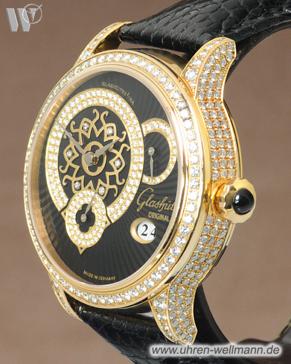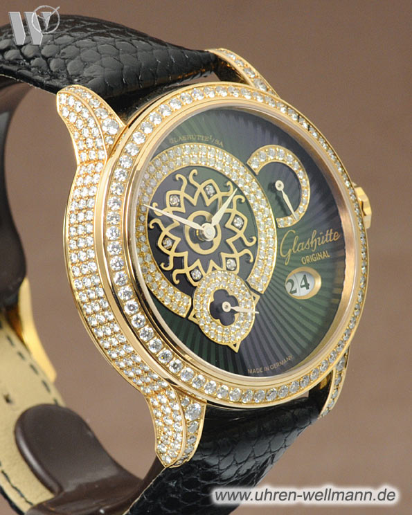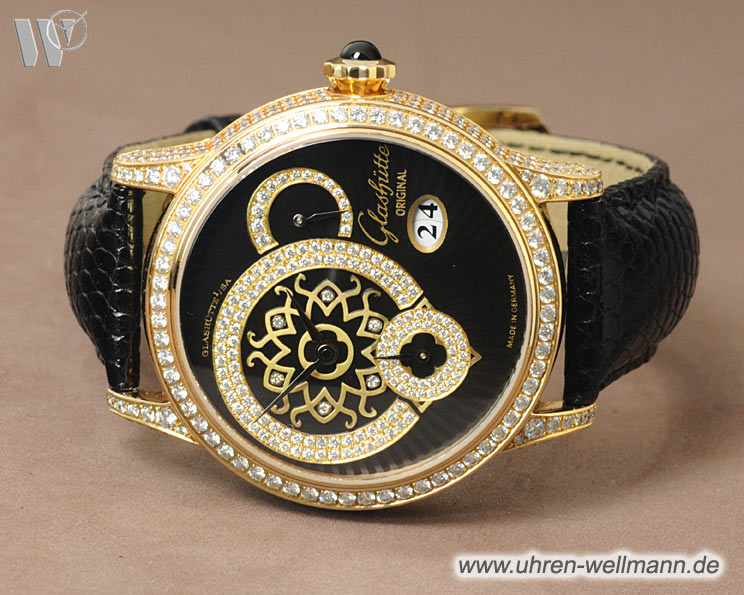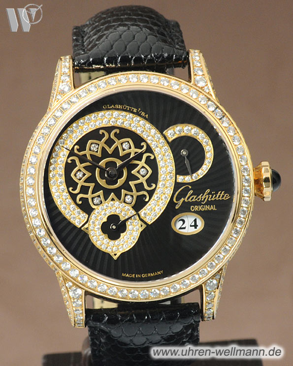 | Bemerkung | Gangreserveanzeige, die original Box hat Spuren, insgesamt 435 Brillanten mit zus. Ca. 3, 74 ct. |