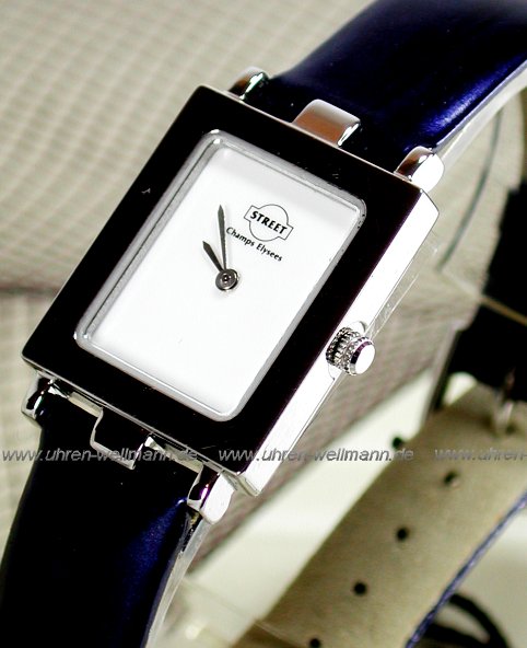 | Bemerkung | Lederband, Quarz, weißes Blatt, Gehäusegröße: 32 x 21 mm, Höhe: 5, 9 mm, Kristallglas, ab Hersteller 30 m wassergeschützt – Lady´s wristwatch steelcase with leatherstrap, white dial |